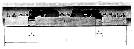 HFD型、HFDT型、HFDJ型單極組合式滑觸線,整跨長度超過200米,且溫差較大時,防止由于熱膨脹引起的滑觸線變形,應(yīng)用膨脹段。一般沒100米間距處裝一組。膨脹段設(shè)計間距:每付由兩處伸縮間距,各3公分,共6公分。安裝時,先確定膨脹段所裝的位置,根據(jù)工作場地全年的溫差與安裝時的溫度,預(yù)調(diào)好伸縮間距。例:冬天安裝時,伸縮間距可盡量放大;夏天安裝時,申訴間距放在中間值。與兩端滑觸線連接緊固后,裝上防護罩殼。